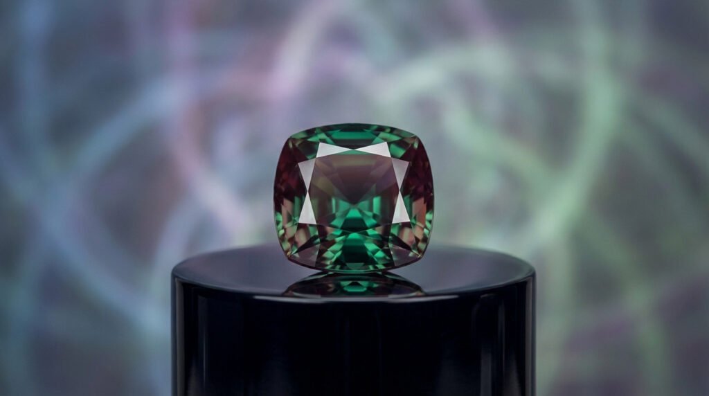 Soyons clairs : l’alexandrite n’est pas une pierre à part, mais une variété très spécifique et rare de chrysobéryl. Sa structure chimique repose principalement sur un oxyde de béryllium et d’aluminium.