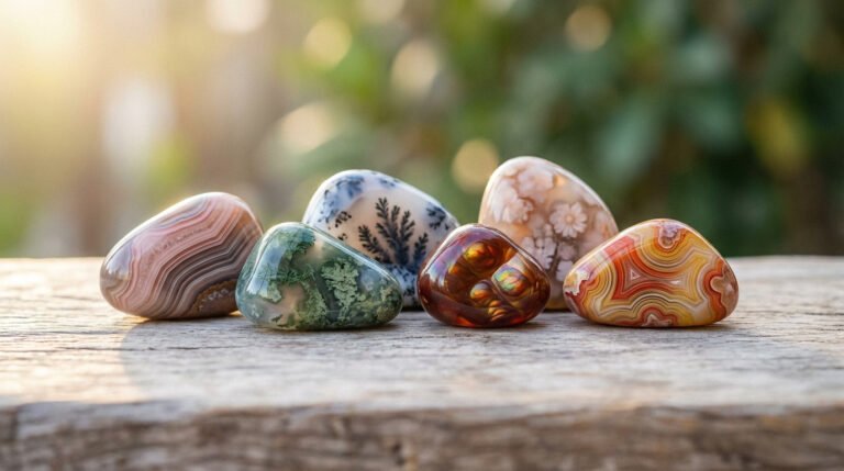 Explorez l’agate lithothérapie : une pierre d’ancrage puissante. Vertus, variétés naturelles et conseils d’entretien pour votre équilibre vital.