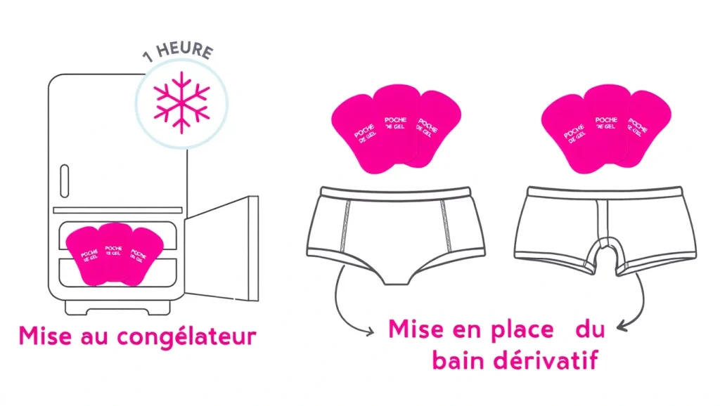 Le bain dérivatif, ancêtre de la cryothérapie périnéale, se pratiquait en s’asseyant dans de l’eau froide (10-20 min). Aujourd’hui, les poches de gel froid, glissées dans un étui en coton, offrent une alternative discrète et prolongée (45-60 min). Si les deux méthodes partagent les mêmes effets, la cryothérapie modernisée facilite l’usage quotidien, clé pour des bénéfices durables. L’effet sur le transit et le sommeil est renforcé par cette régularité.